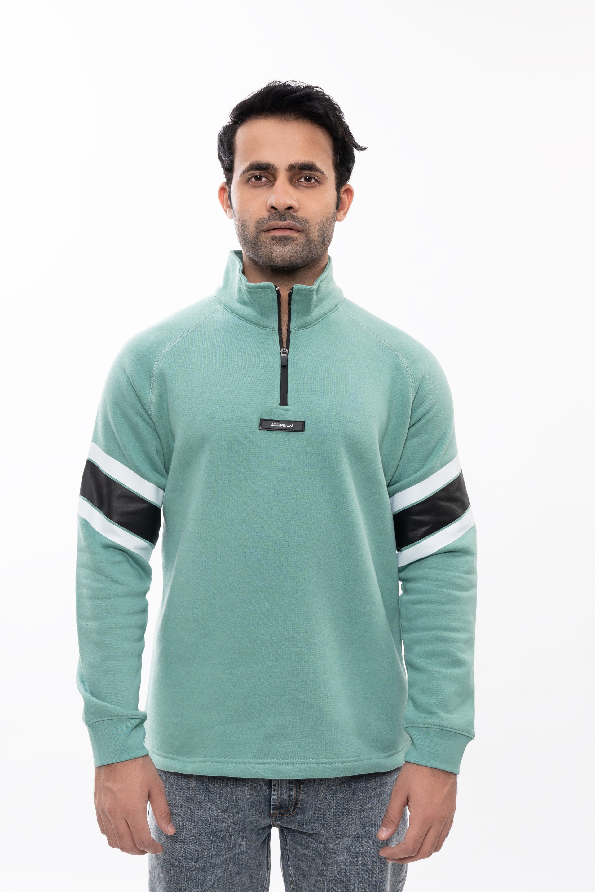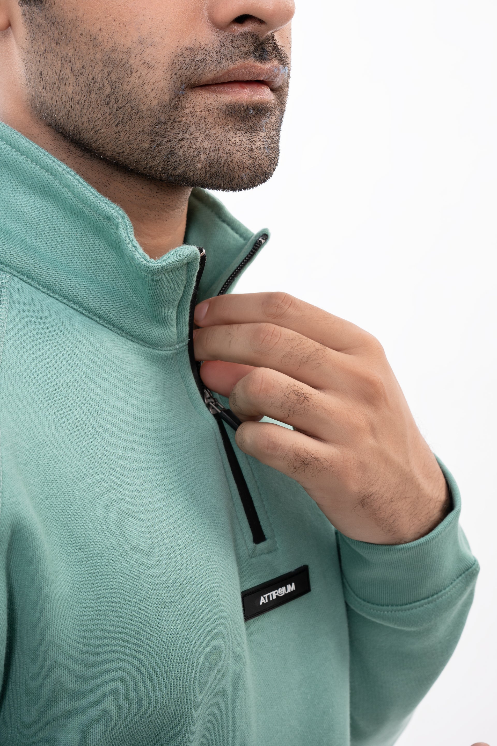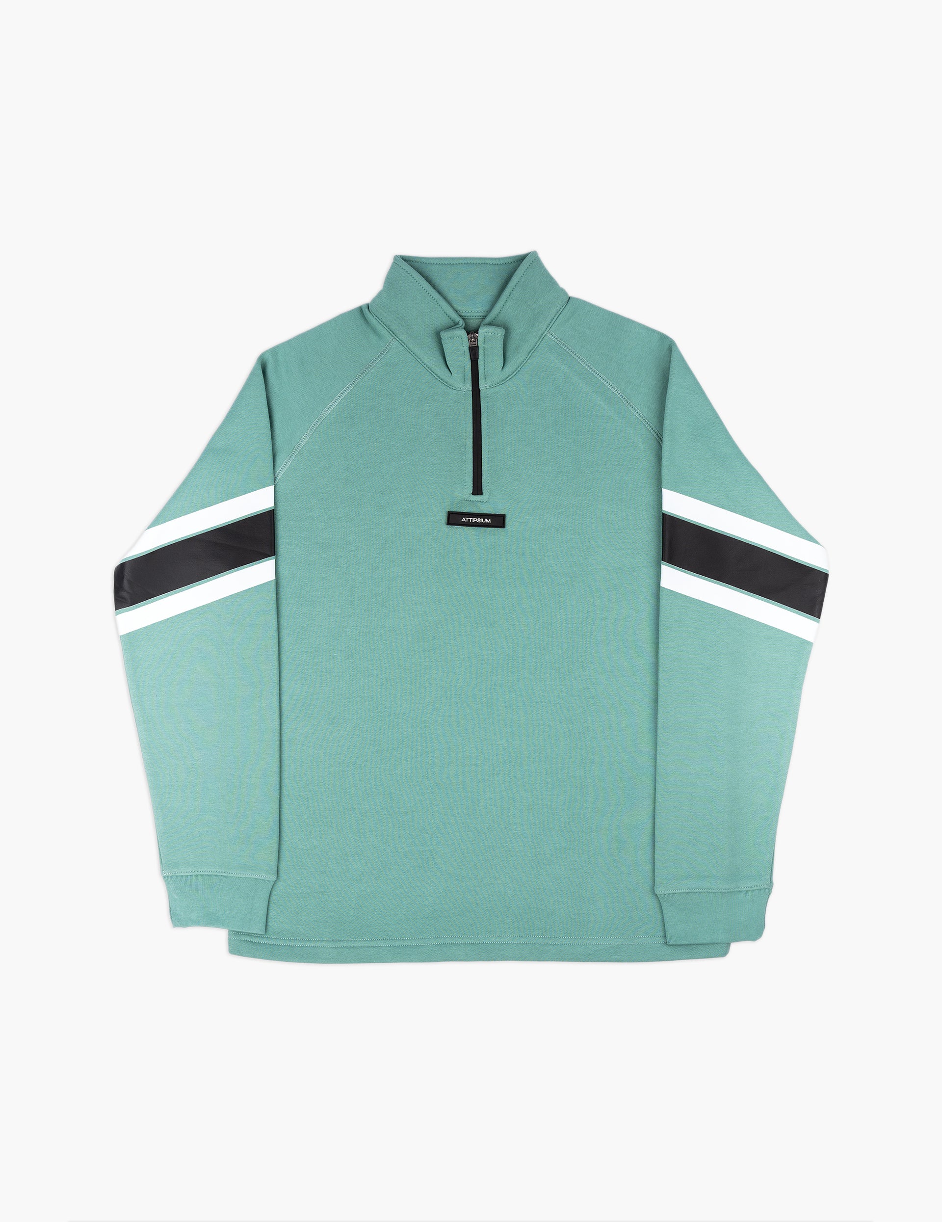 Upgrade your wardrobe with our stylish Beryl Green Half-Zip, designed to blend comfort and sporty aesthetics seamlessly.