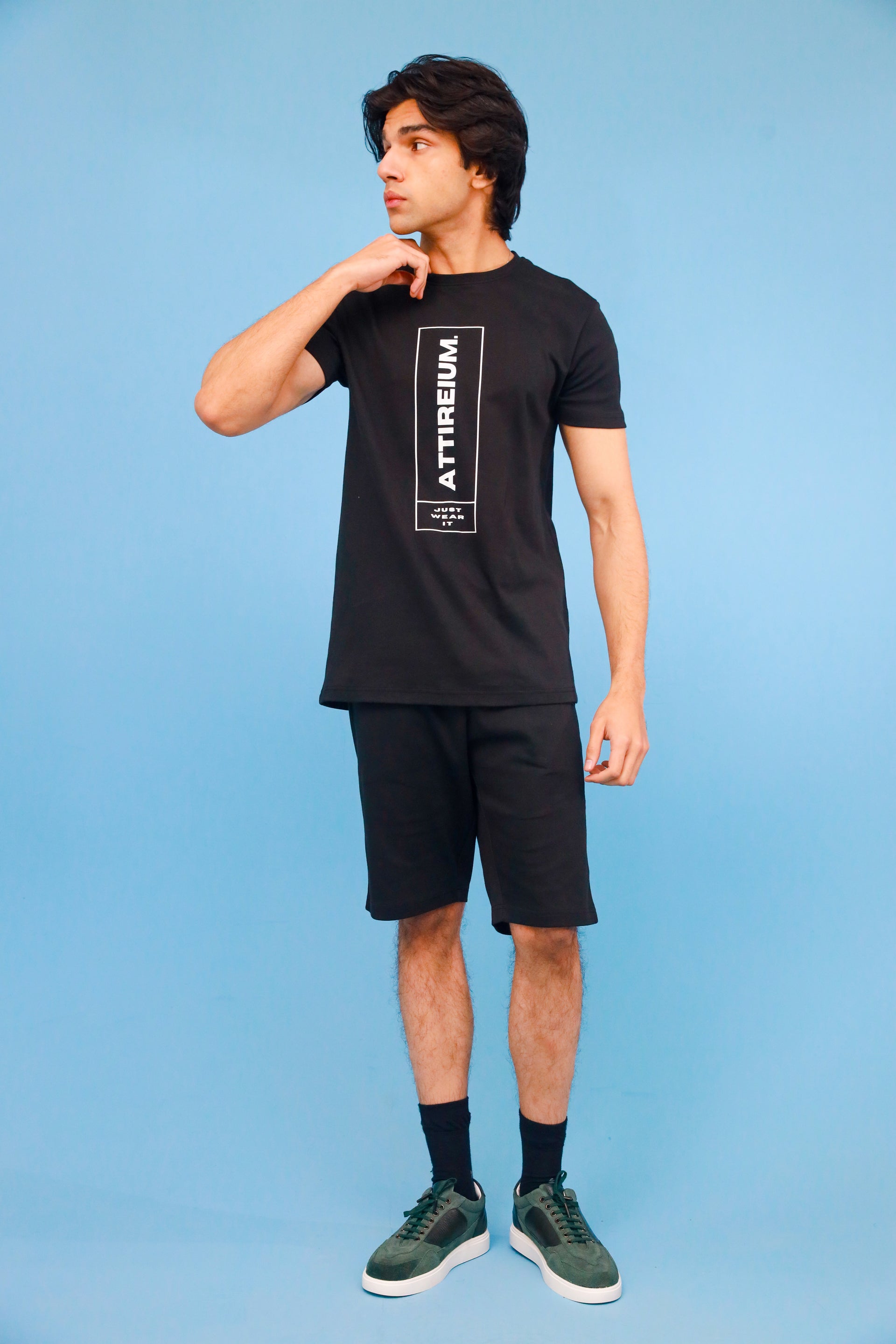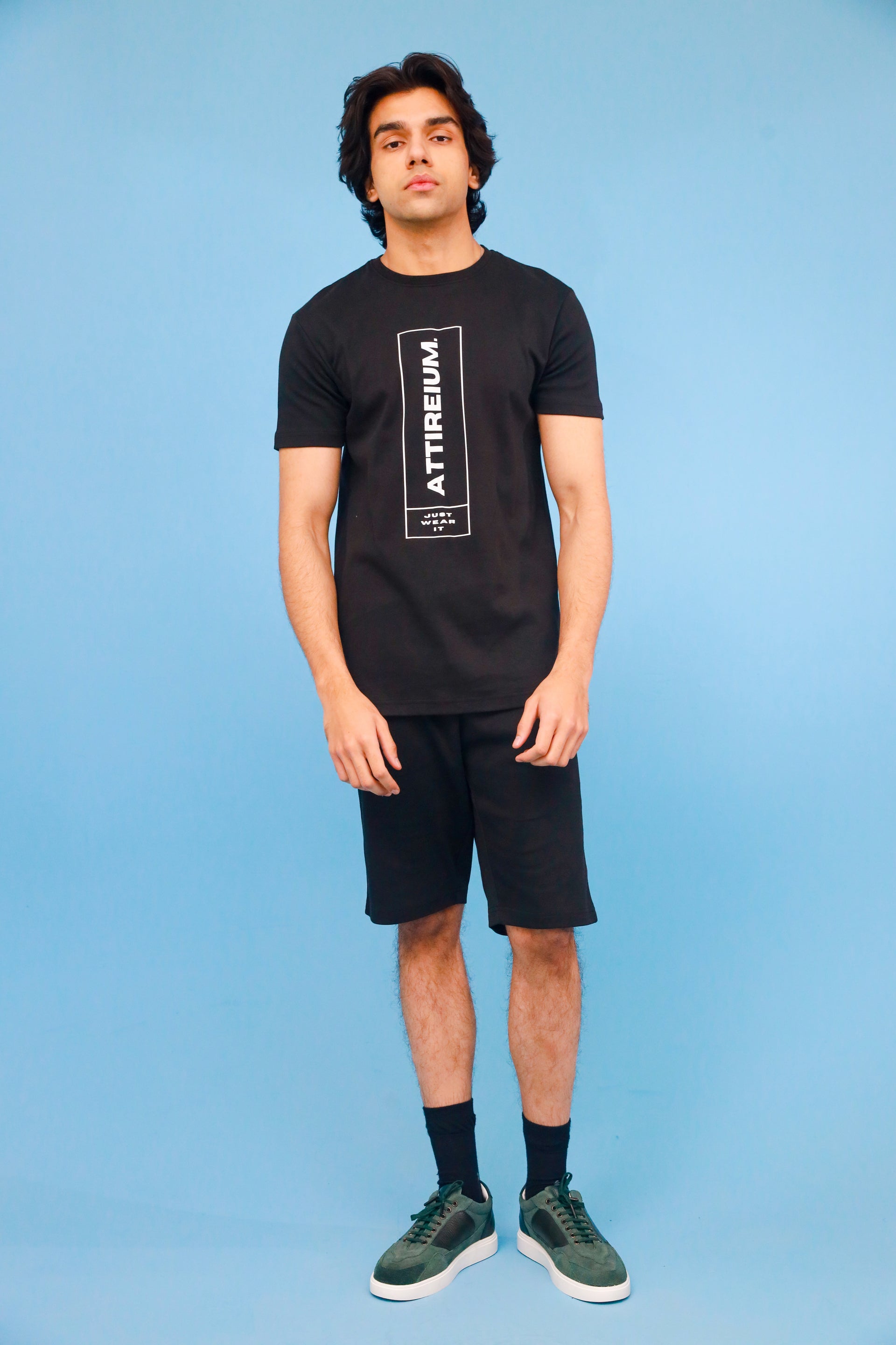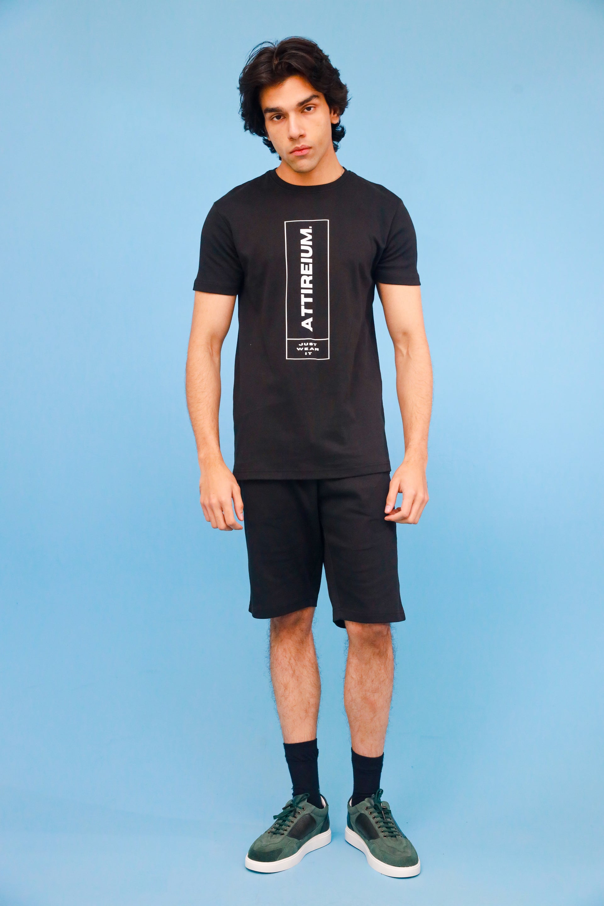 Simplicity meets sophistication in the Attireium Classic Black Co-ord Set. This all-black ensemble is sleek, modern, and incredibly versatile. The black t-shirt features a vertical Attireium logo print, giving it a clean and contemporary vibe....