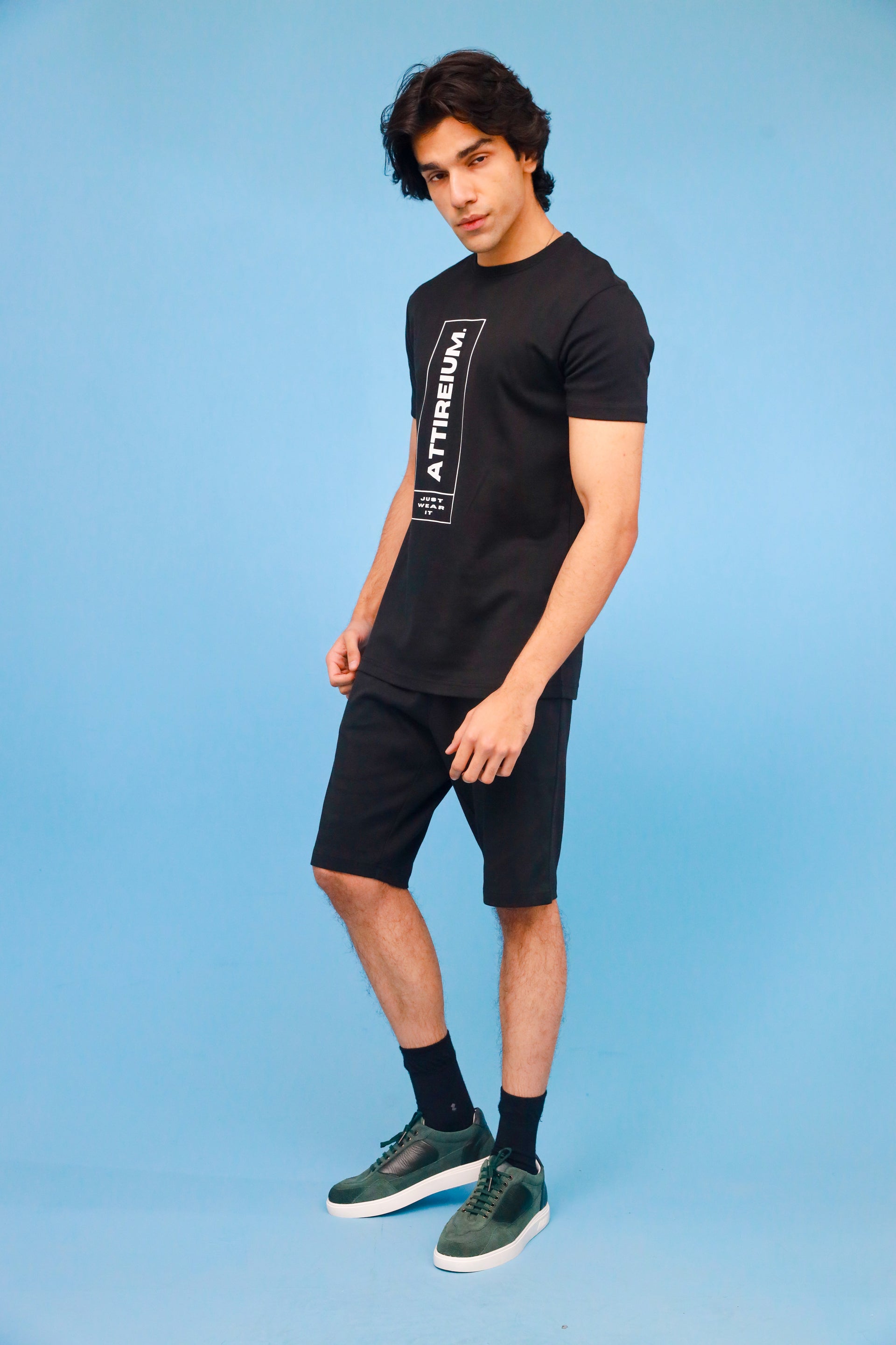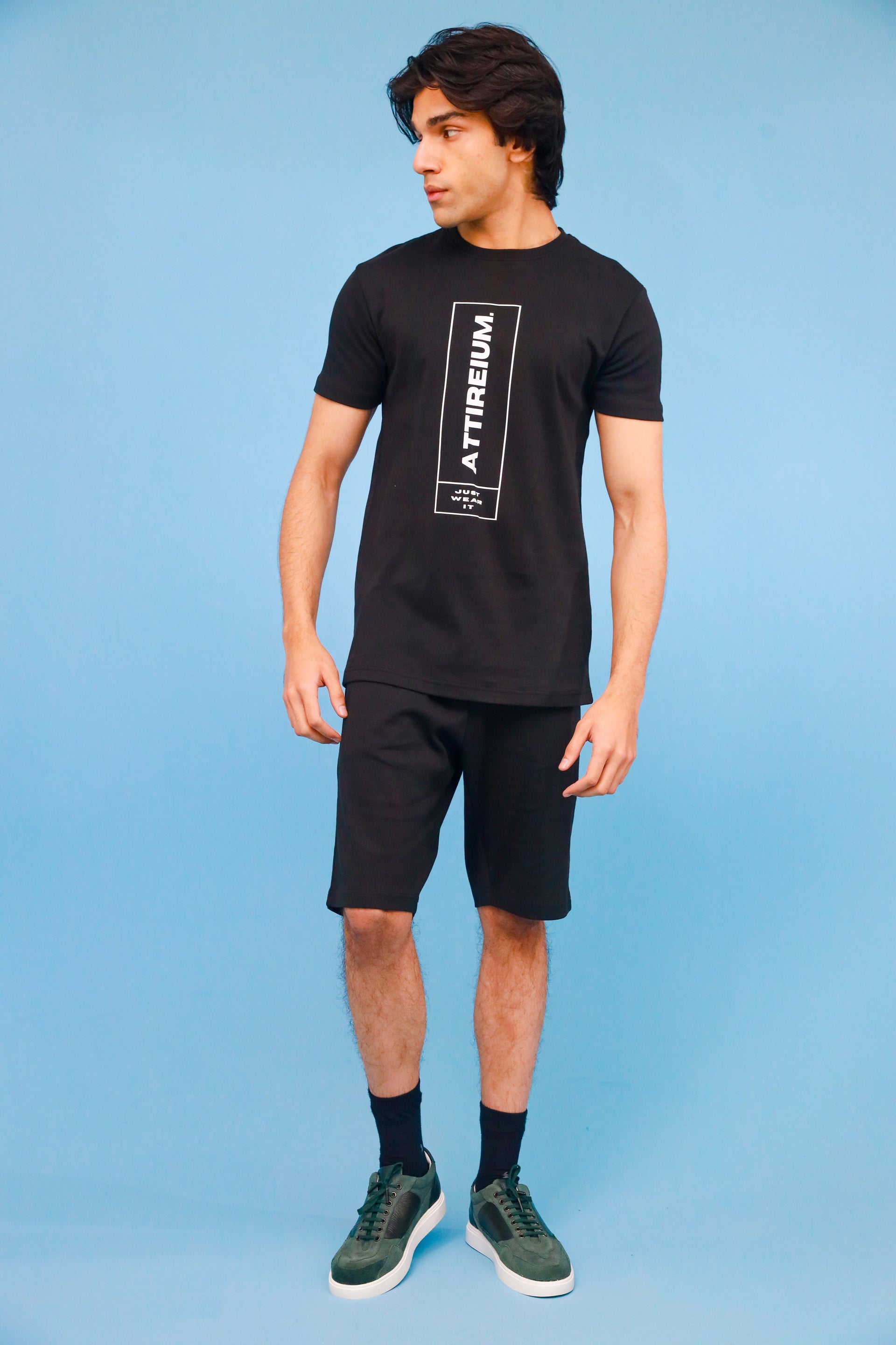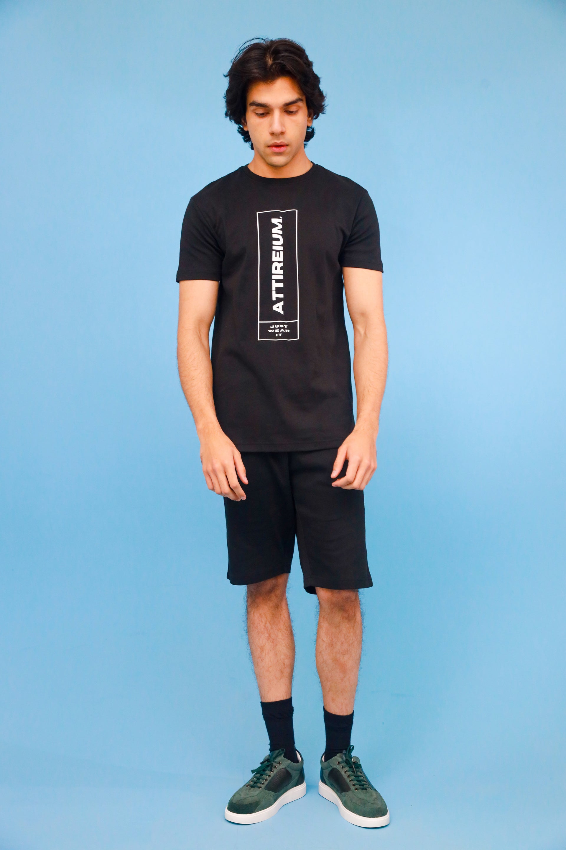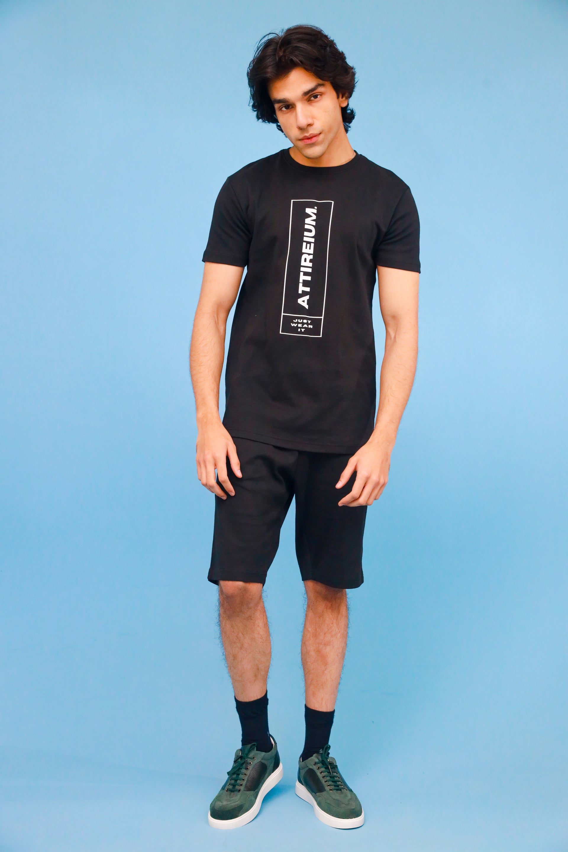 Simplicity meets sophistication in the Attireium Classic Black Co-ord Set. This all-black ensemble is sleek, modern, and incredibly versatile. The black t-shirt features a vertical Attireium logo print, giving it a clean and contemporary vibe....