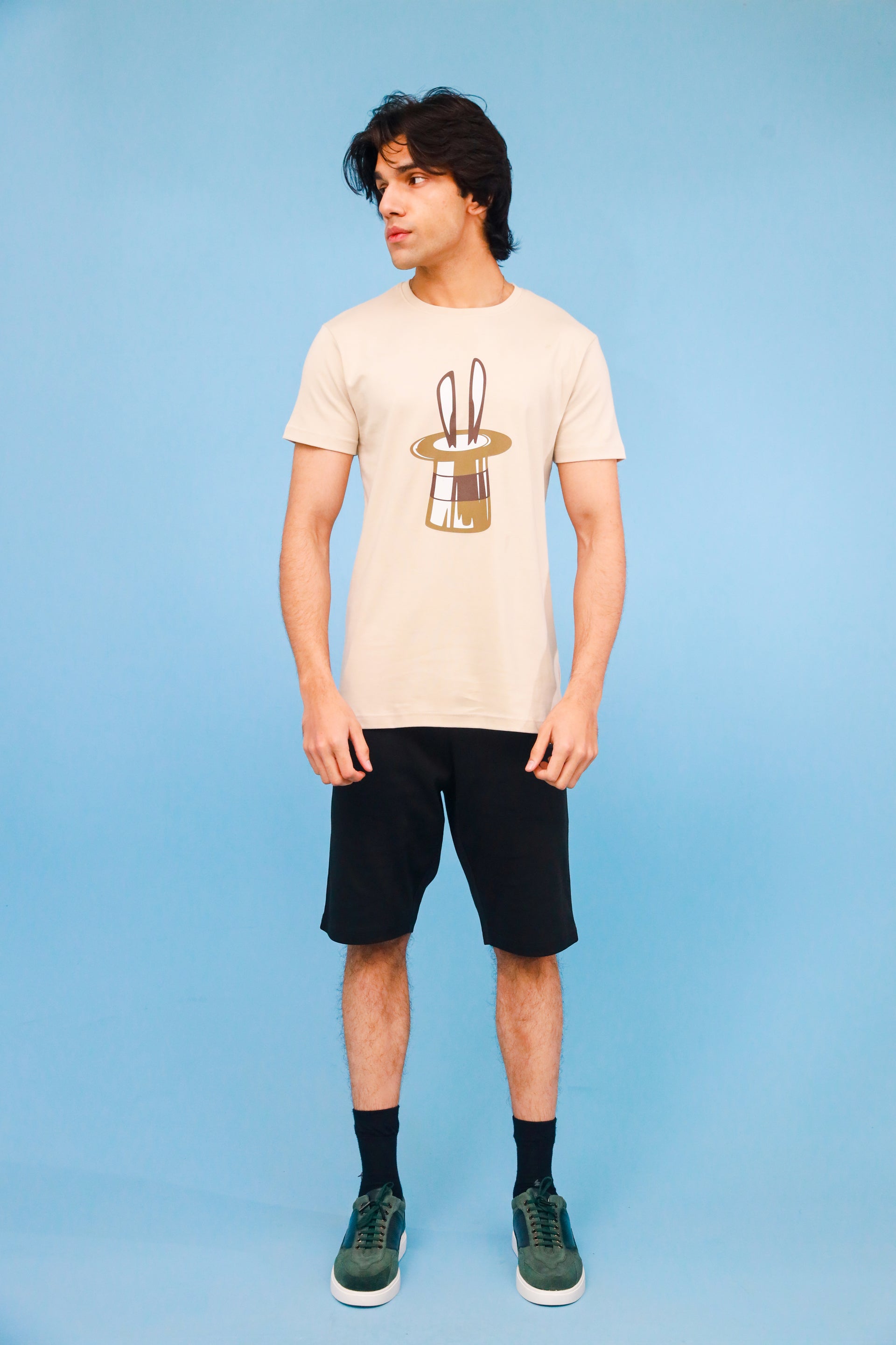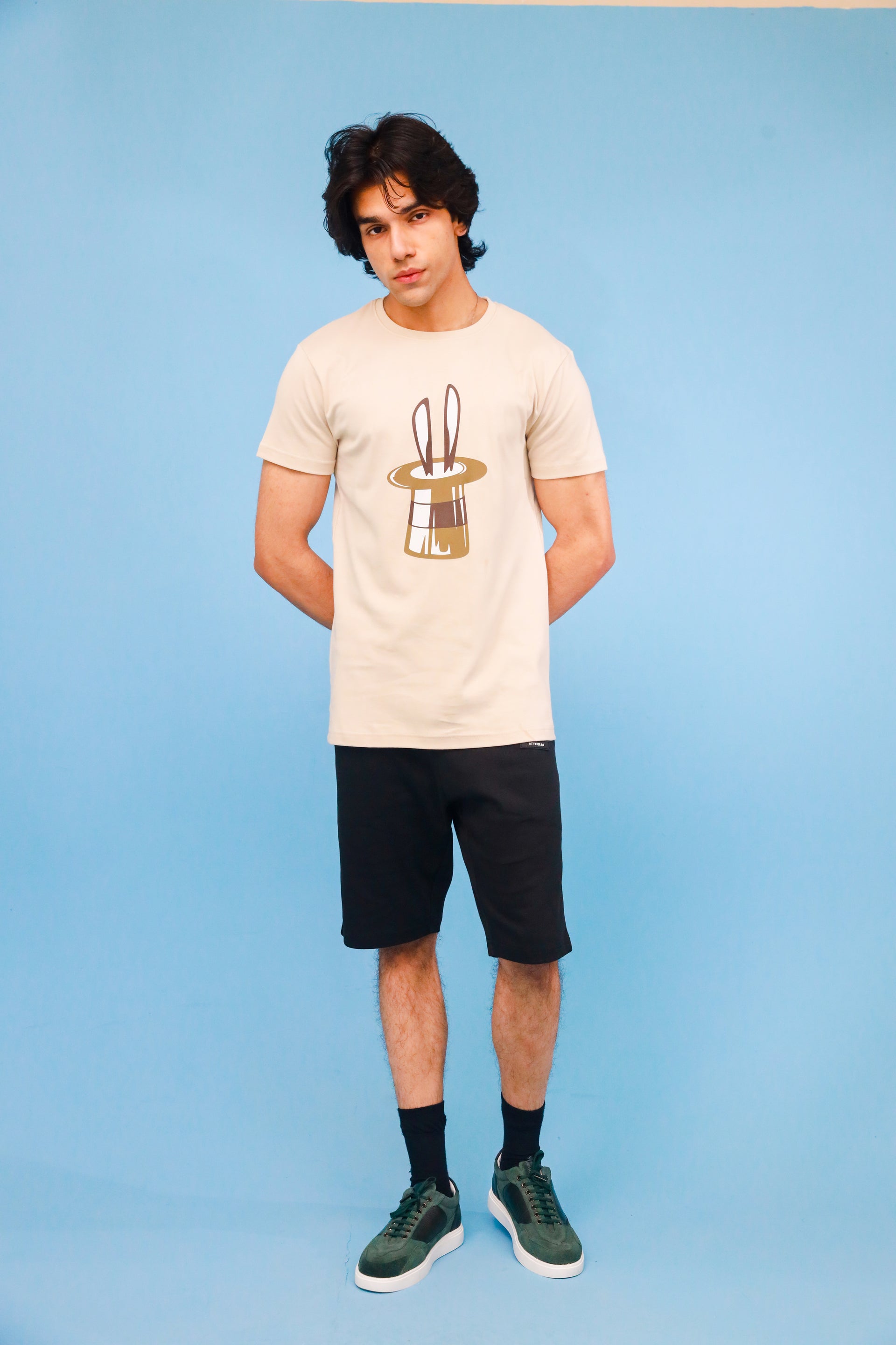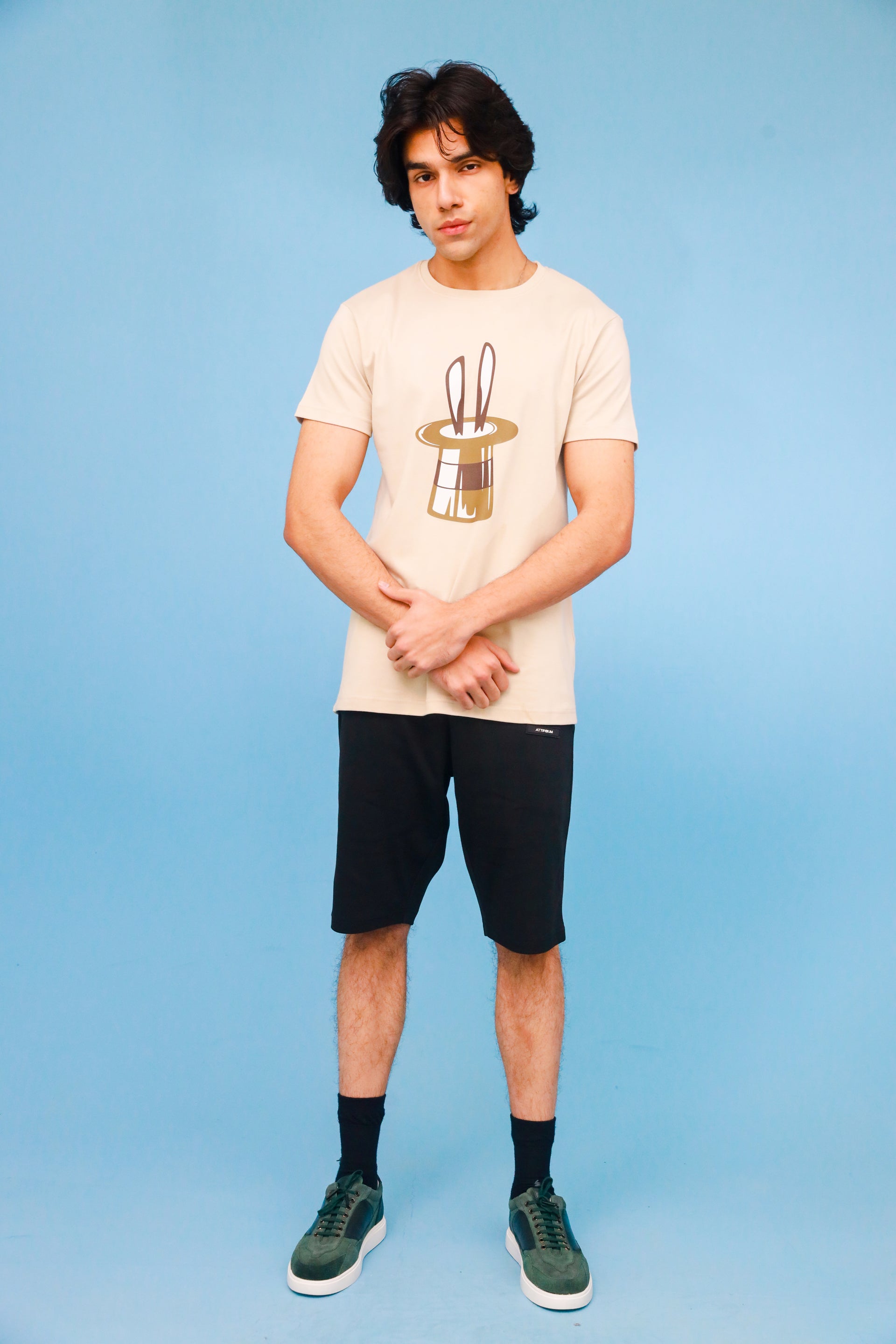 Add a touch of magic to your wardrobe with the whimsical Magic Hat Co-ord Set. The beige t-shirt is adorned with a quirky rabbit-in-the-hat design—a playful nod to the unexpected surprises of life. Its soft...