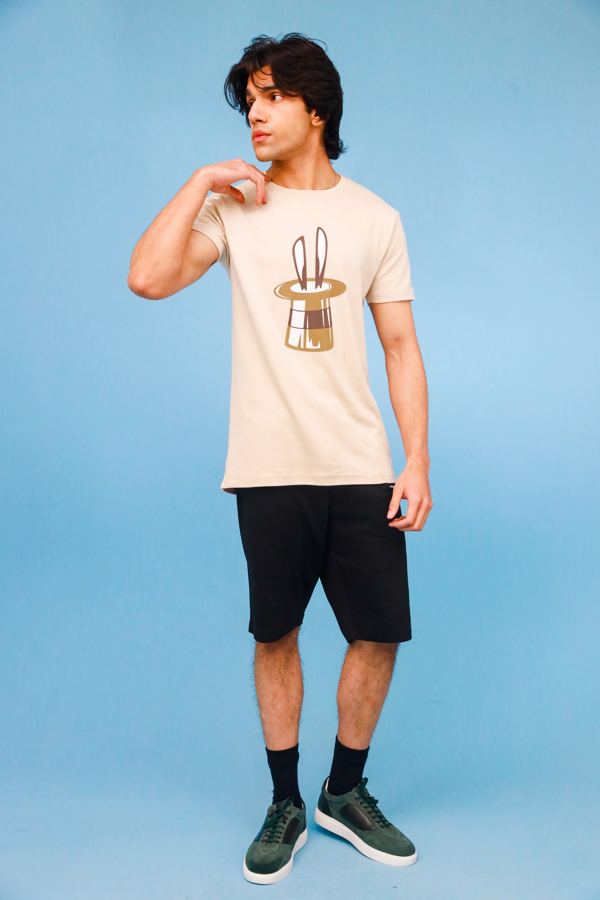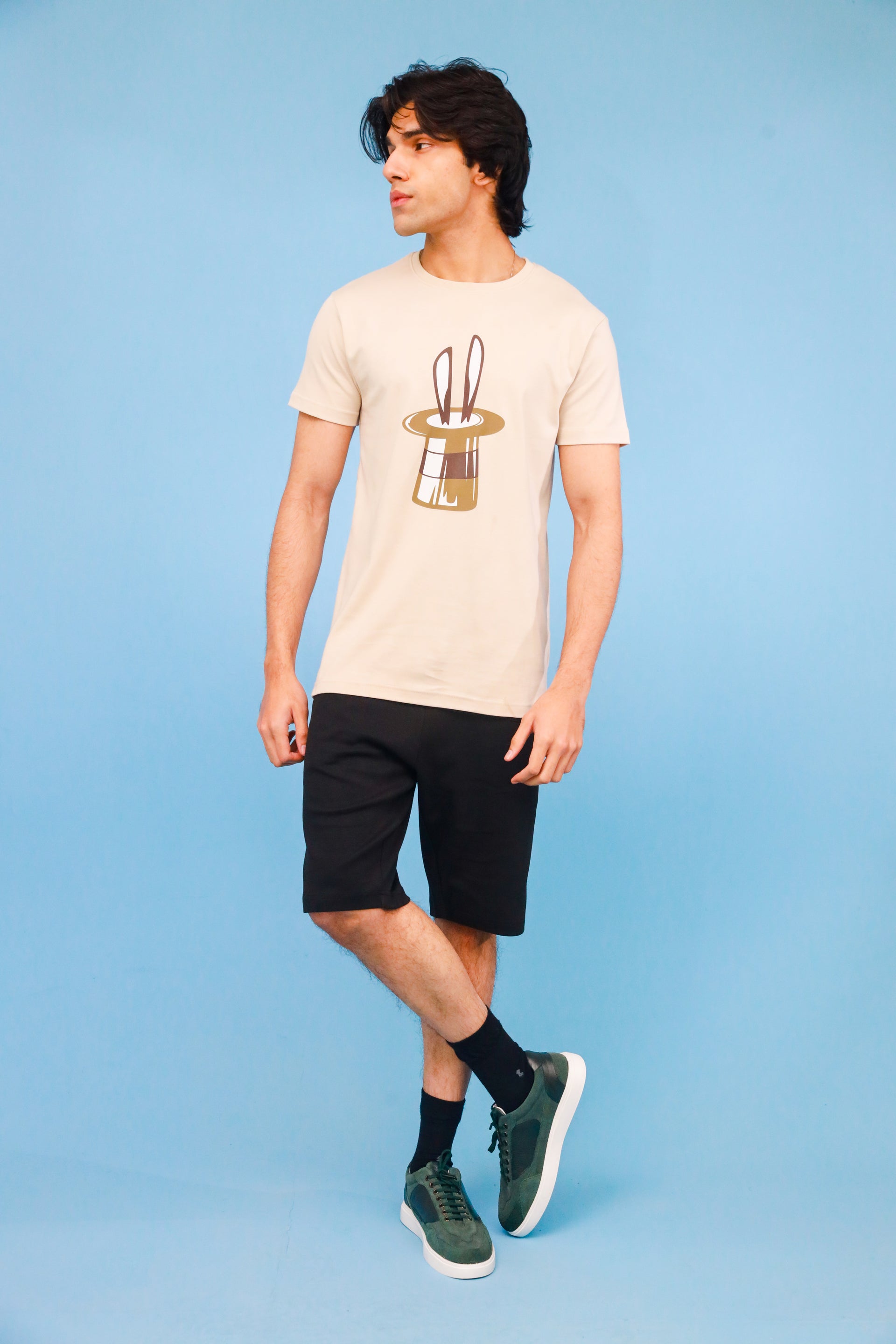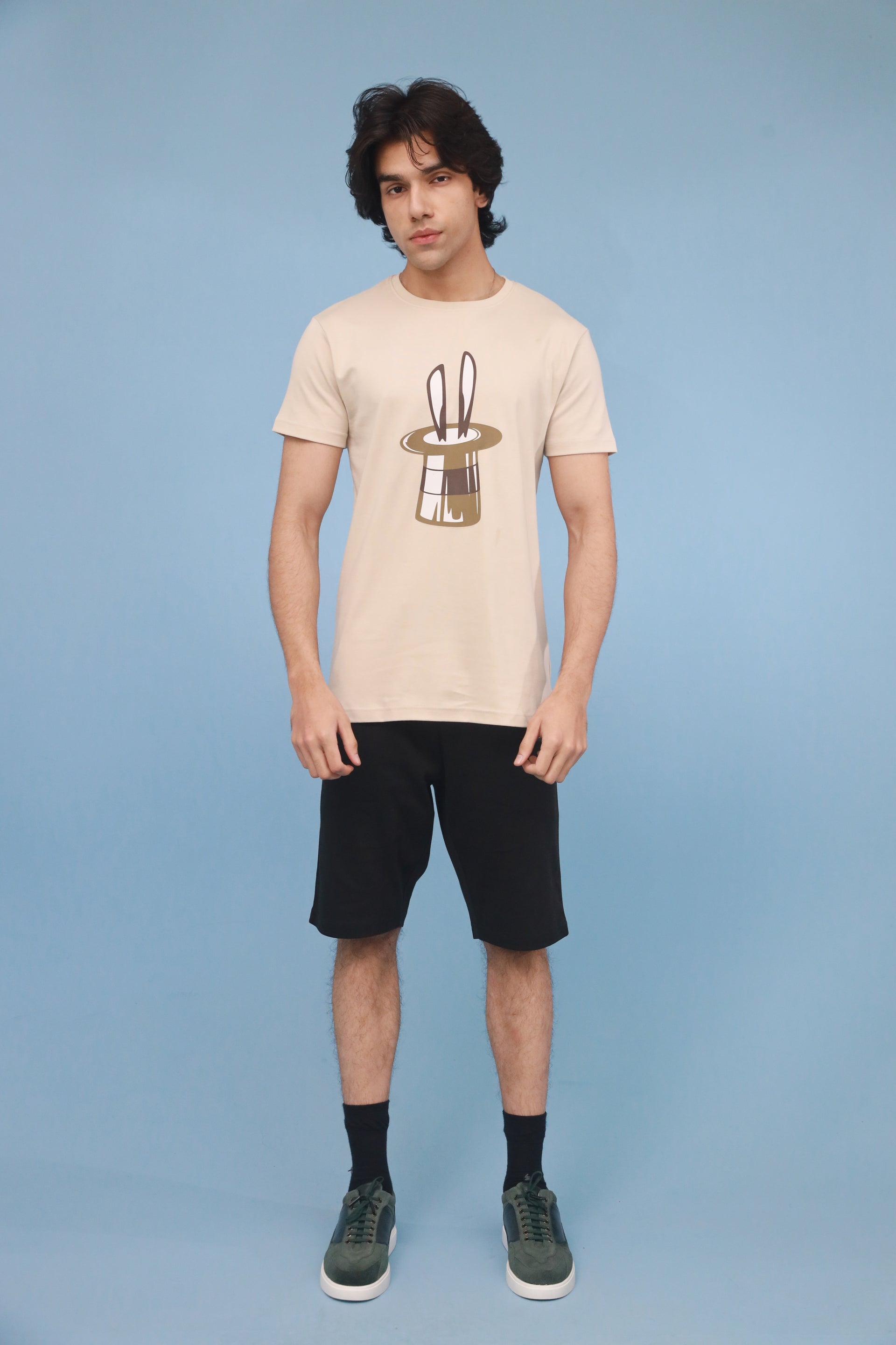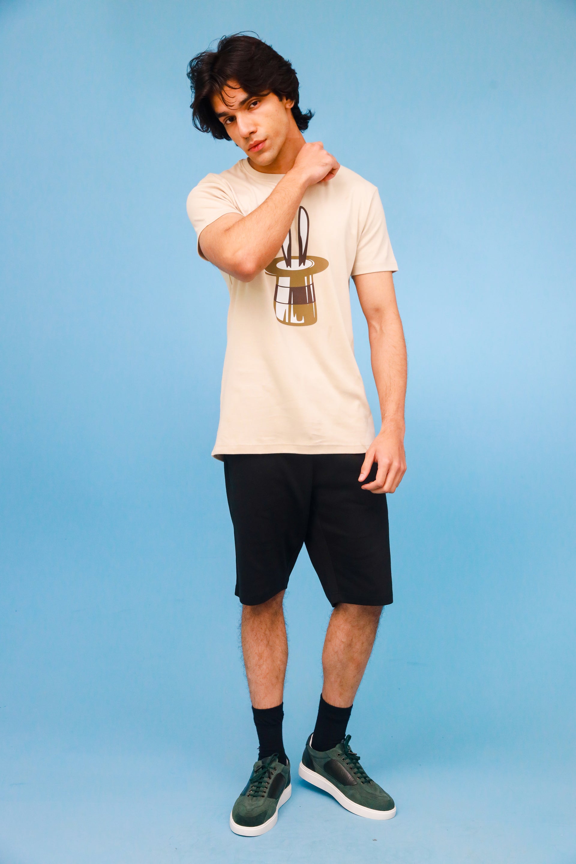 Add a touch of magic to your wardrobe with the whimsical Magic Hat Co-ord Set. The beige t-shirt is adorned with a quirky rabbit-in-the-hat design—a playful nod to the unexpected surprises of life. Its soft...