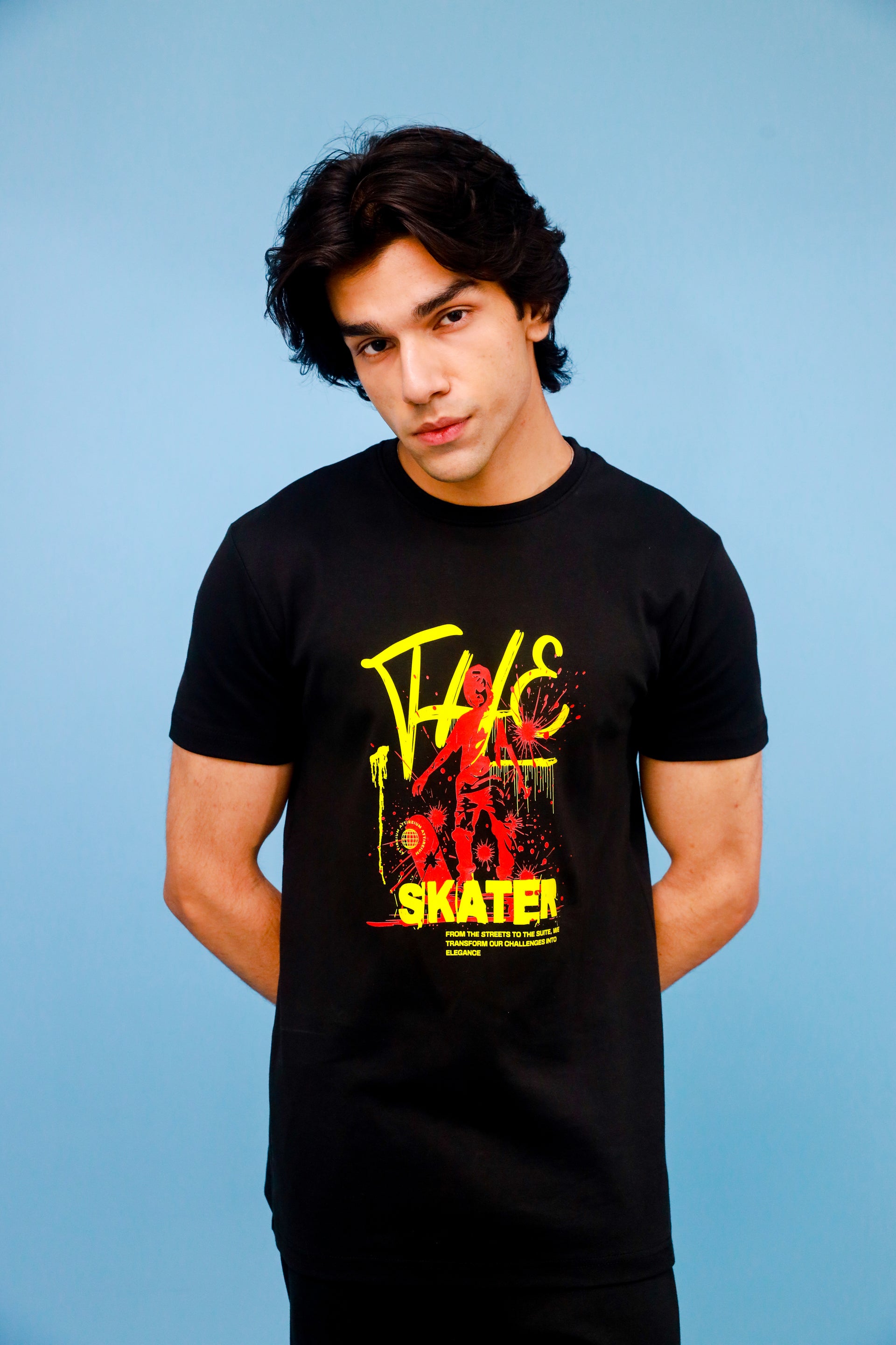 Express your passion for skate culture with the Skater Black Graphic Tee. Whether you’re on your board or off, this tee lets you bring the energy and confidence of the skate world wherever you go.