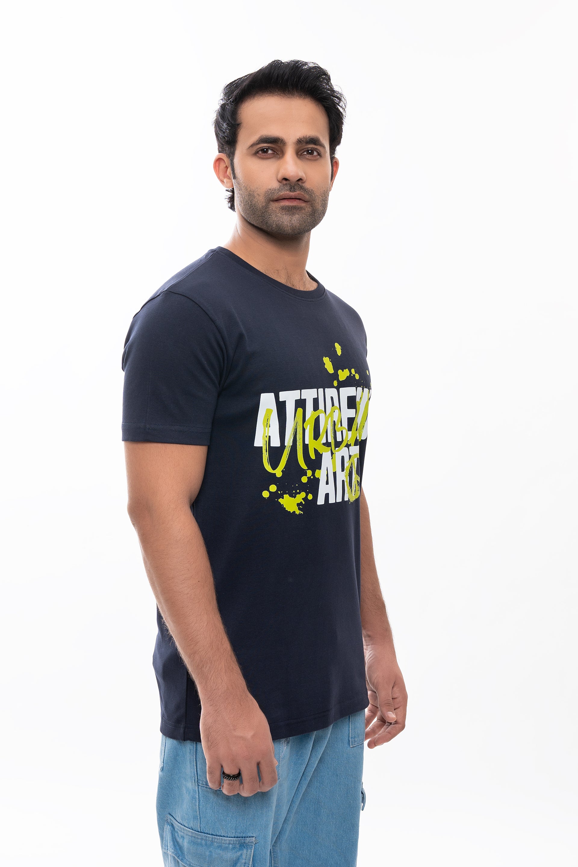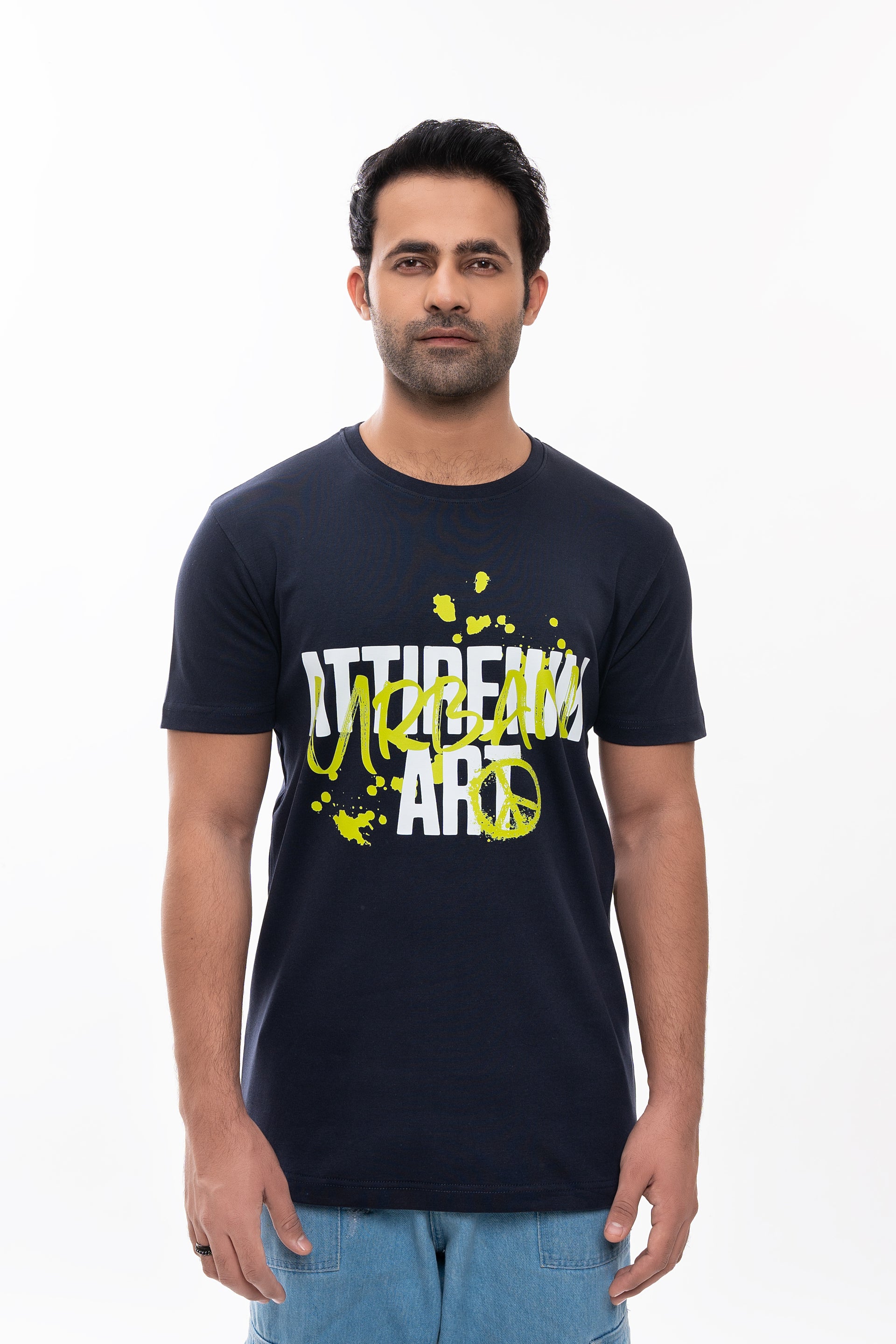 Embrace city style with the Urban Attireium Peacoat Graphic Tee – a sleek, modern staple made for those who thrive in the urban landscape. With a bold front graphic and a rich Peacoat navy color, this tee is the ultimate blend of street-smart edge and premium quality.