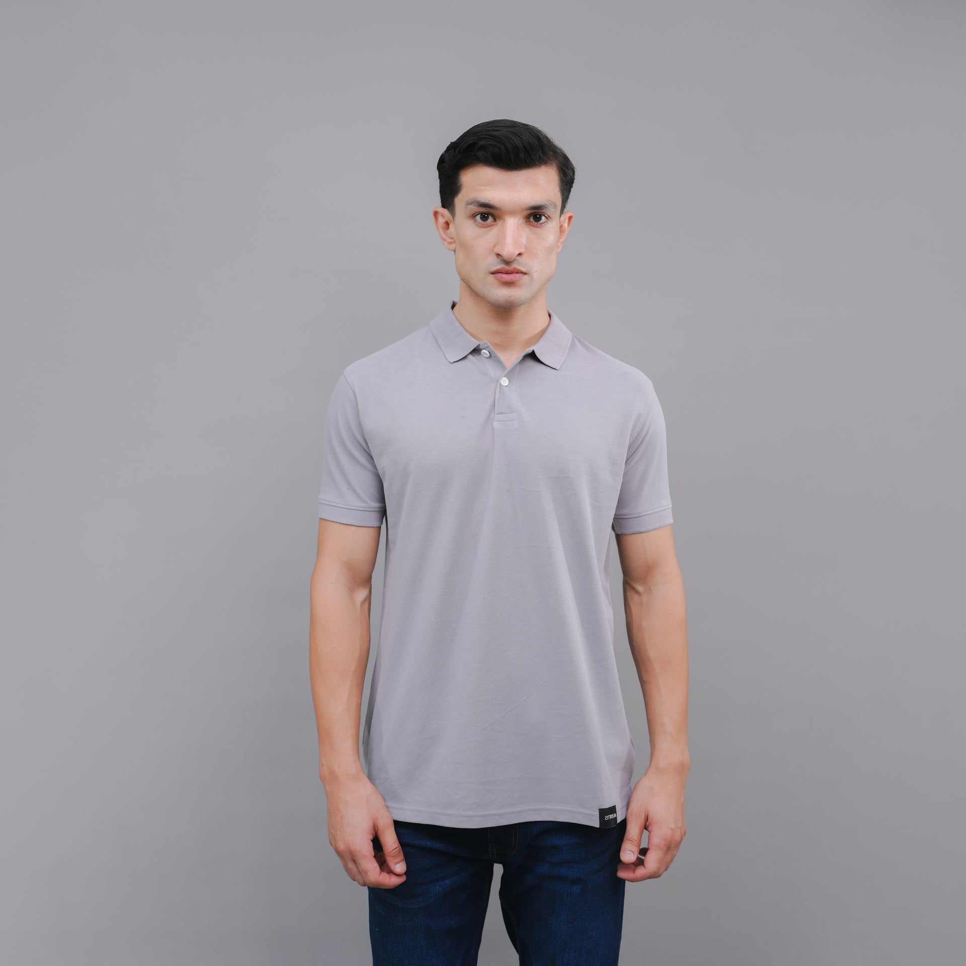 - charcoal polo shirt, storm color polo, minimal cotton polo