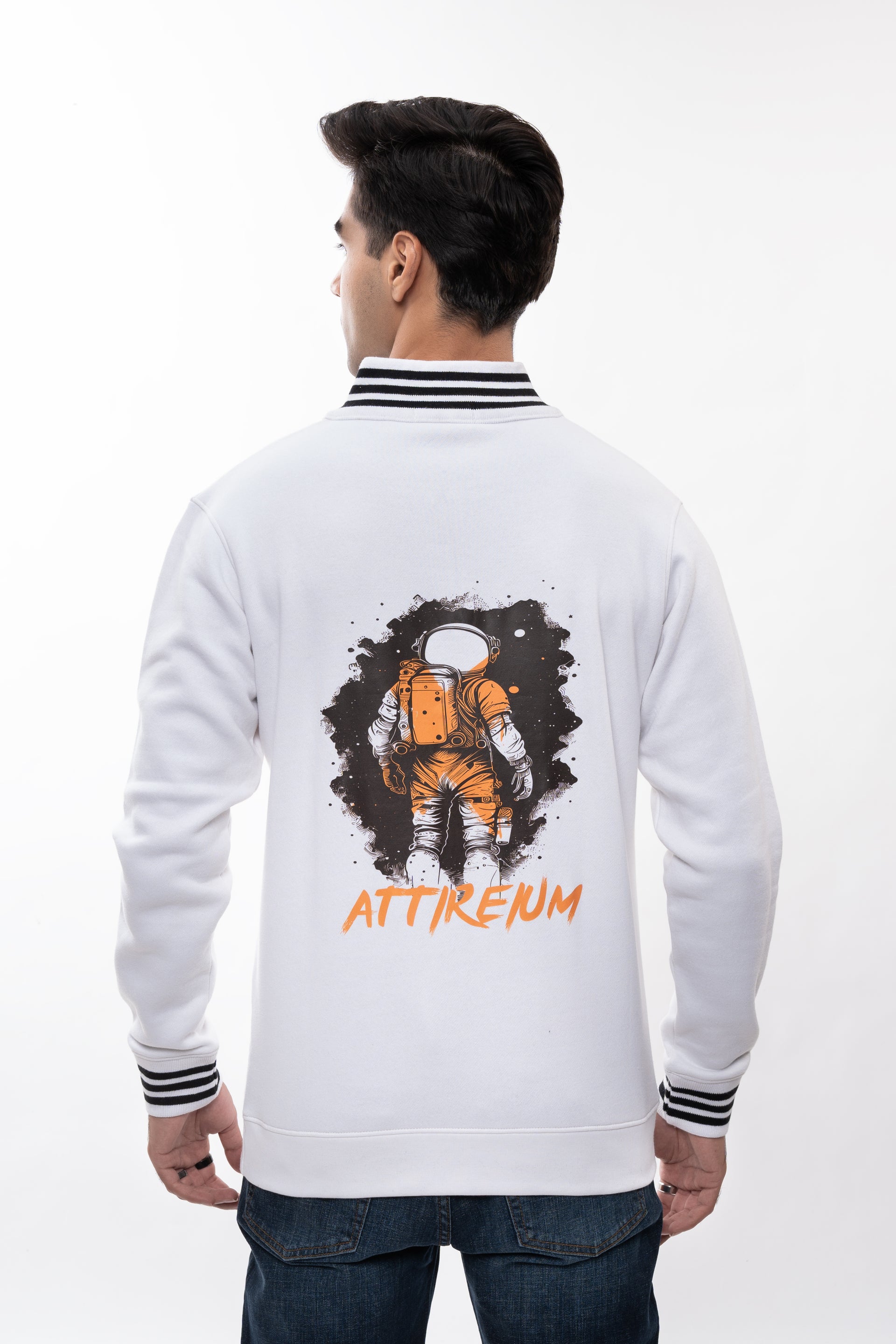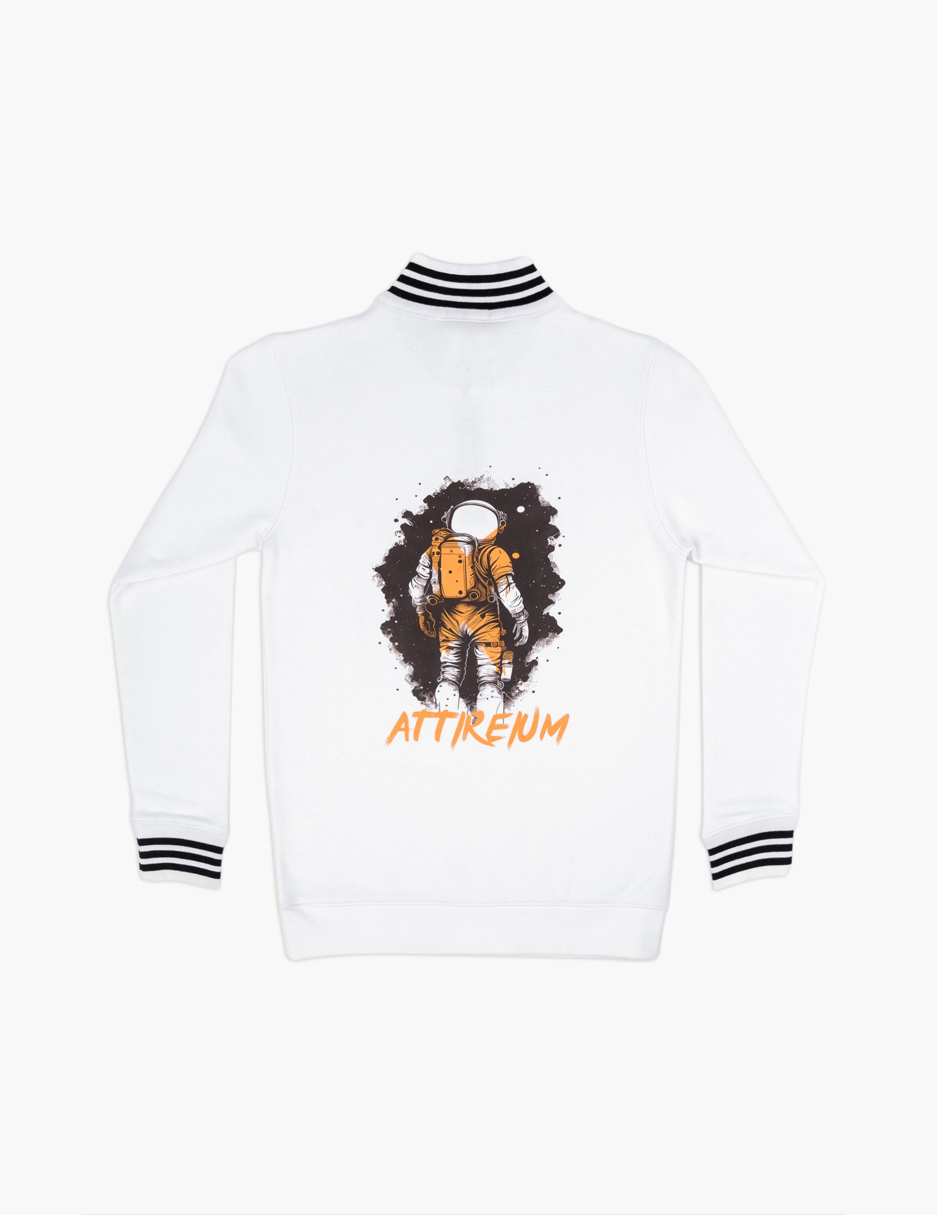 Embrace a modern and adventurous look with our White Half-Zip Pullover, featuring a unique astronaut graphic on the back. Perfect for those who seek both comfort and style, this pullover is an ideal choice for casual outings and cool-weather layering.